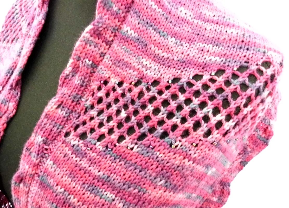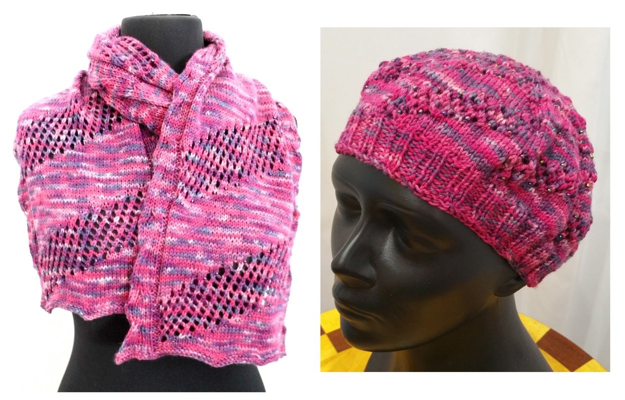 Mütze und Schal in Zusammenarbeit mit www.wundervoll.biz. Mütze von oben nach unten gestrickt, der Schal quer von einem Ende zum anderen. Mit vielen kleinen Perlen verziert.
