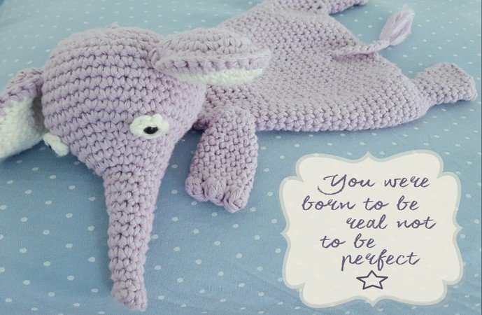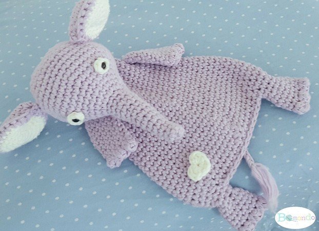 Bei Verwendung der angegebenen Wolle wird das Schmusetuch ca. 31 cm groß (von Kopf bis Fuß)