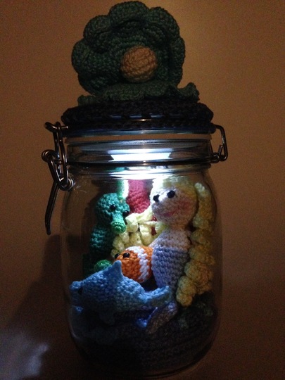 Putziges Nachtlicht, dass in keinem Kinderzimmer fehlen darf. Zum Verschenken kann es sehr gut zusätzlich personalisiert werden und du bist auf jeden Fall die Person mit dem coolsten Geschenk. In der Anleitung enthalten ist: der Bodenbelag mit Koralle, der Deckelbezug mit einer Shellmuschel, die oberniedliche kleine Meerjungfrau mit Clownfisch, ein Seepferdchen und ein Mini Delphin der auch als Schlüsselanhänger dienen kann.**