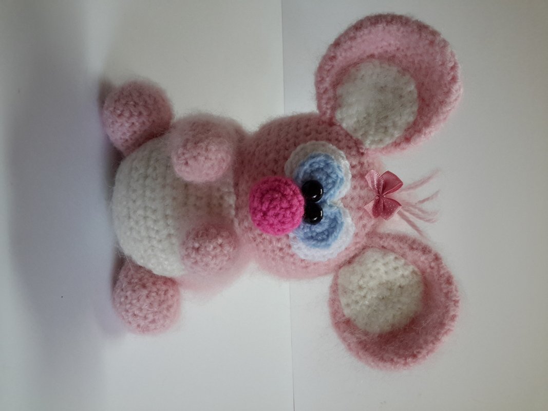 Die Anleitung ist für das dunkle Mäuschen, aber das rosa Mäuschen ist ähnlich, genaueres steht in