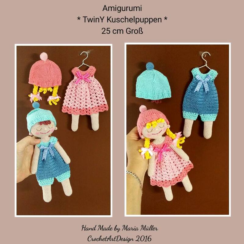 Diese süße Puppe, eignet sich gut für Kinder zum Kuscheln, Spielen, als Geschenk, Mitbringsel, Tröster, man kann sie umkleiden als Junge oder Mädchen. Die Anleitung enthält für beide eine ausführliche Beschreibung mit vielen Bildern. Sie wurde nur mit Catania Garn gehäkelt und ist kindersicher, es wurden keine Perlen, Knöpfe usw. benutzt, alles ist gehäkelt und genäht, sie wird 25 cm groß.