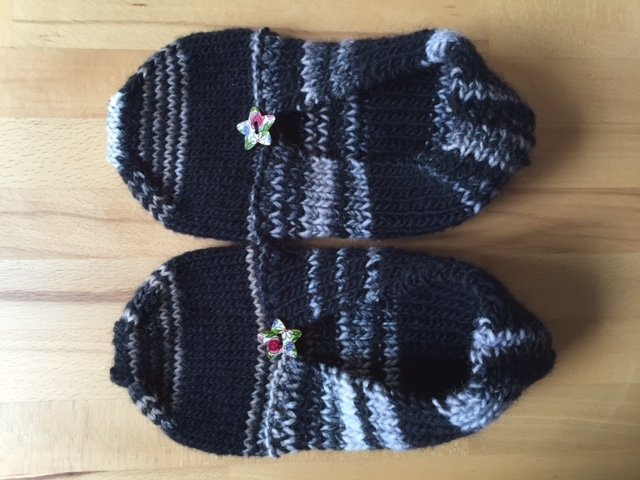 Keine Lust auf Hausschuhe aus dem Laden?? Ihr könnt diese hier in den Gr. 37-39 oder 40-42 nachstricken. Benötigt werden 100 g Lana Grossa Ragazza Amico Uno 110m/50g (51% Schurwolle, 49% Acryl), zwei Dekoknöpfe, eine Rundstricknadel Gr. 4,5 und ein Nadelspiel Gr. 4,0.