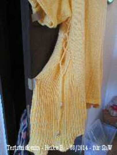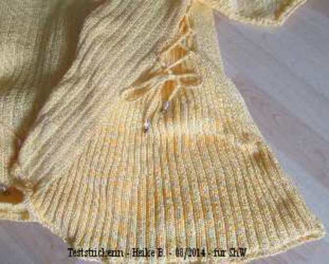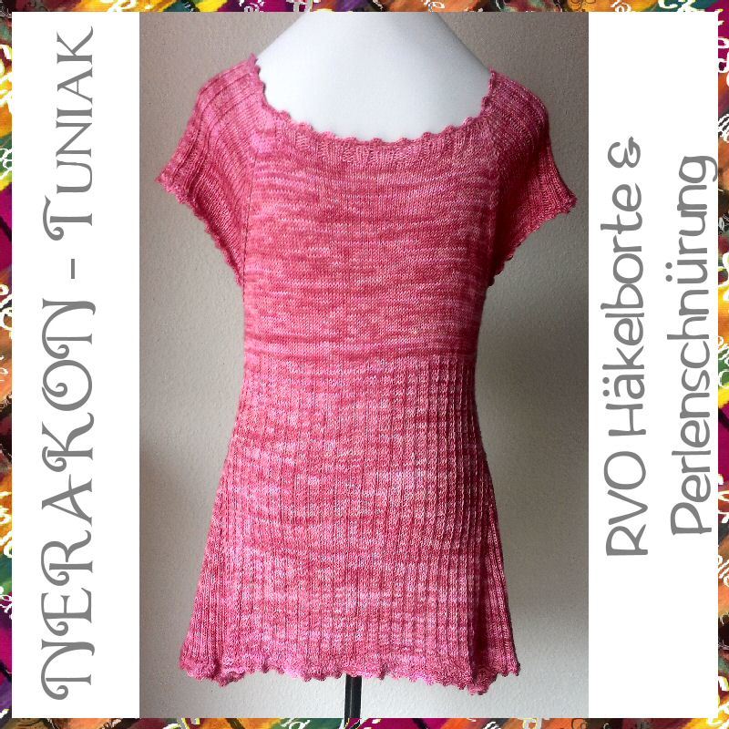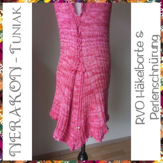 Ein einfacher und doch raffinierter RVO durch die spezielle Form, die Häkelborten und die Schnürungen an den Seiten und mit Perlen an dessen Enden. Anleitung für die Größe 42/44 - 52-54.