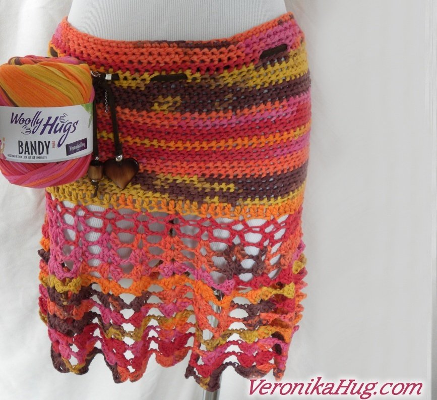 Häkelrock an einem Stück von oben nach unten gehäkelt.