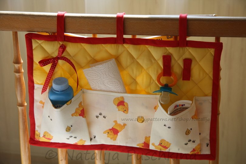 Es ist Nachtsmitte, Dein Baby ist wach und du suchst überall im Haus nach Schnuller, Taschetücher oder lieblings Kuscheltier? Das hat jetzt ein Ende! Mit diesem Utensilo hat man immer alles griffbereit am Kinderbett.