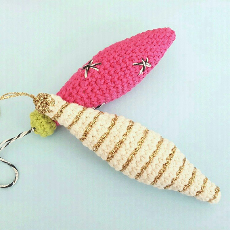 Ich erkläre dir detailliert auf 11 Seiten, wie du den Baumschmuck selbst häkeln kannst.