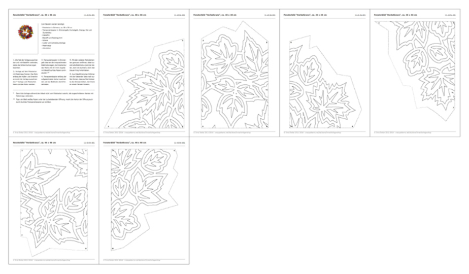 Der Download enthält eine PDF-Datei mit einer Seite Bastelanleitung sowie sechs Seiten Vorlagenzeichnungen in Originalgröße – da die Vorlage größer ist als ein Blatt DIN A4, müssen die Vorlagenteile zuerst mit Klebefilm verbunden werden, Zahlenmarkierungen helfen dabei.