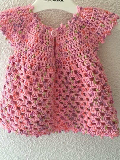 Das Kleid kann auch mit einem Pulli oder einer Bluse getragen werden.mann kann das Kleid auch kürzer Häkeln und als Hängerchen tragen.