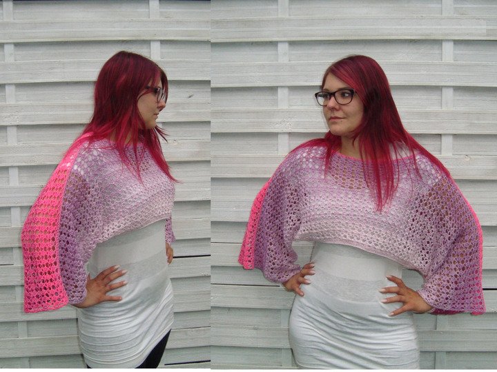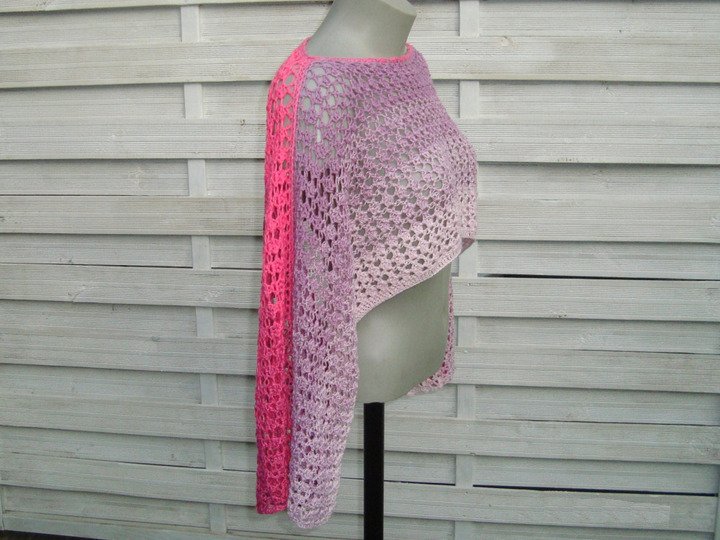 Hier bekommst du in elektronischer Form eine Häkel Anleitung für einen Ärmelschal / Shrug. Für diesen Ärmelschal eignen sich besonders gut Farbverlaufsgarne oder Lacegarne. Gerade wenn die Abende wieder etwas kühler werden, kann man mit diesem Shrug seine Arme und Schultern umhüllen. Ob am Strand, zum Abendkleid, zur Jeans, dieser Ärmelschal macht immer eine gute Figur.