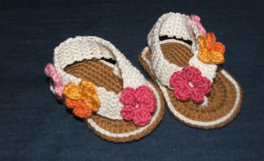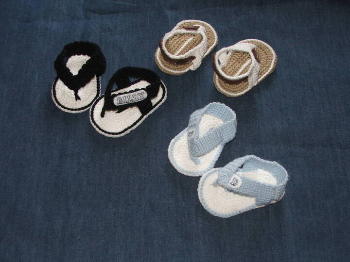Zauberhafte Babysandalen für die warmen Tage. Da kann gemütlich mit den Zehen gewackelt werden :) Für kleine Mädels geschmückt mit Blumen, Jungs bevorzugen die bunten Fische :)