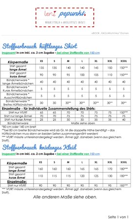 Wie bei allen “leni pepunkt.” Damen Schnitten sind auch hier alle Größen von XS-XXXL beinhaltet!