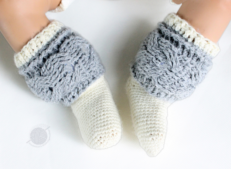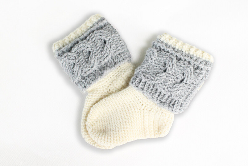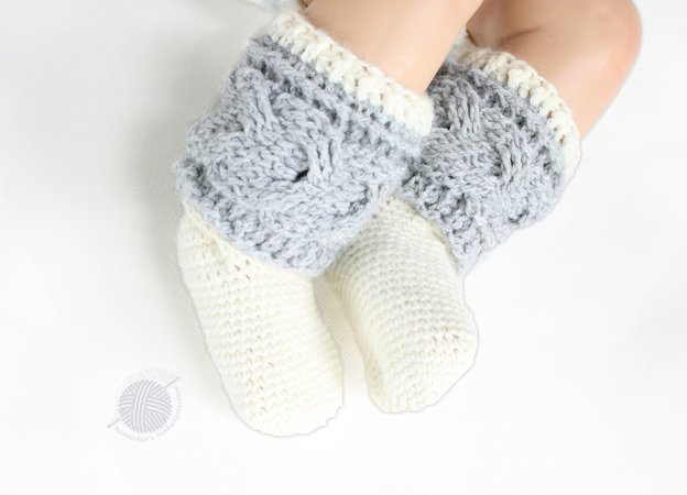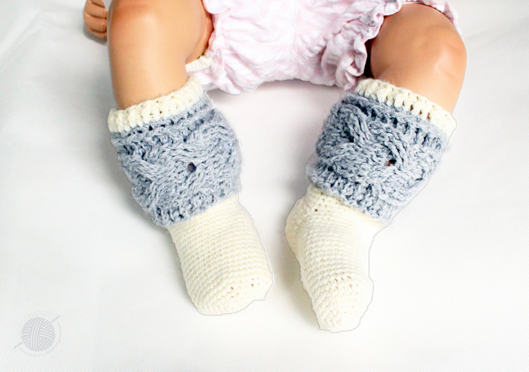 Weiche Baby- & Kindersocken mit dem Zopfmuster schnell und unkompliziert für Dein Kind oder Enkelkind zu häkeln, ist mit dieser Anleitung überhaupt kein Problem! Augeprägtes Zopfmuster und leicht anpassbare Größe machen diese Babyschuhe zu einem echten Hingucker!