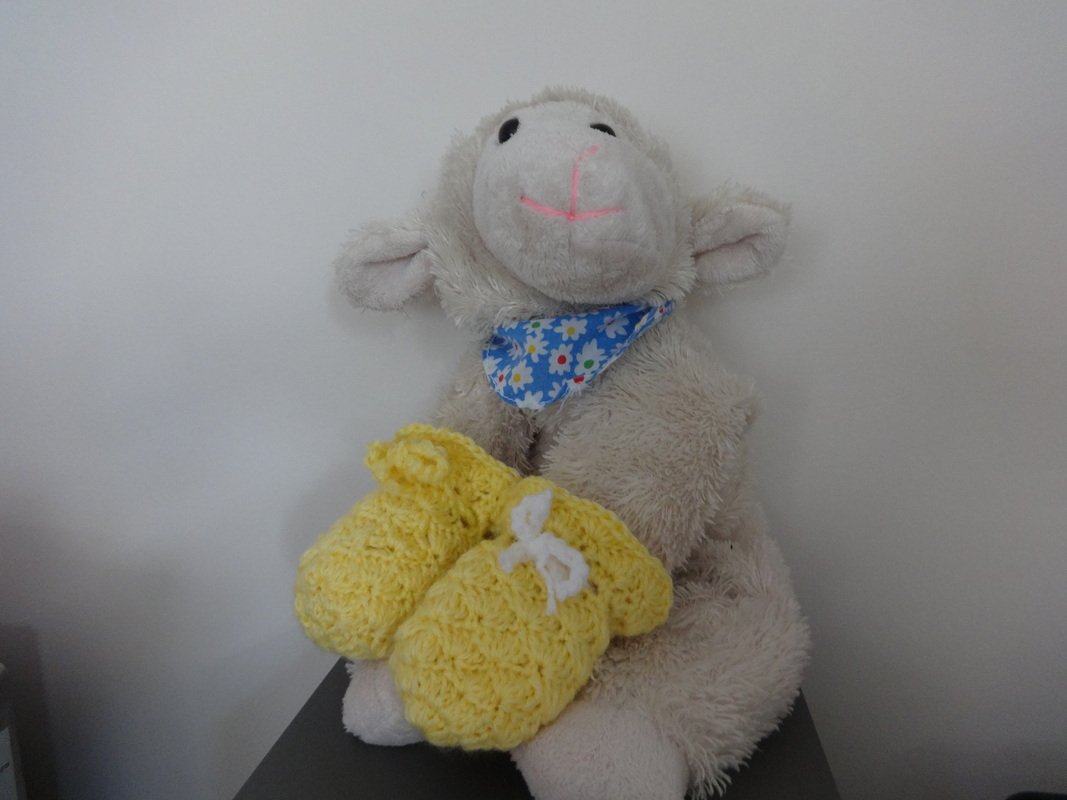 Ich habe diese mit Wolle von Gründ angefertigt, für Nadelstärke 3-4, ich habe Stärke 3 verwendet
