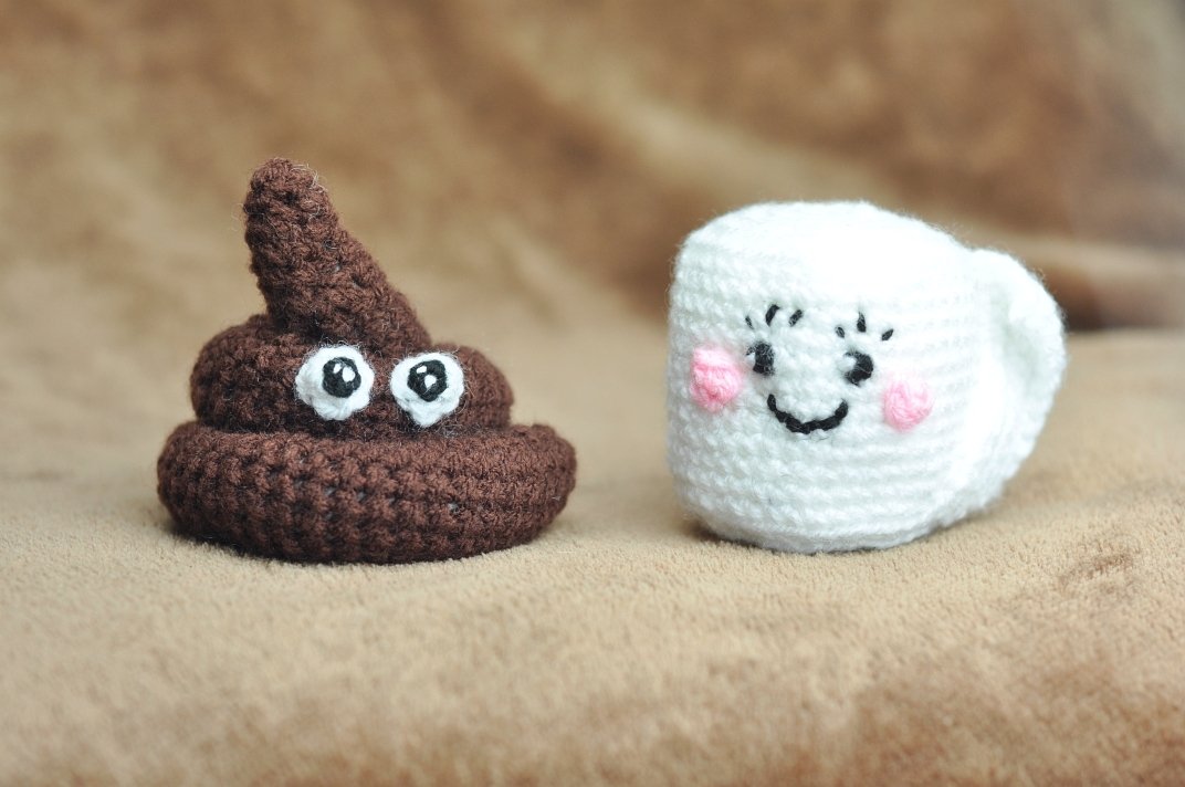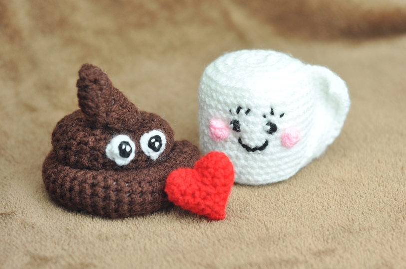 Das Häufchen ist ca. 8 cm hoch und breit und die Toilettenrolle ca. 6 cm hoch und 5 cm breit.