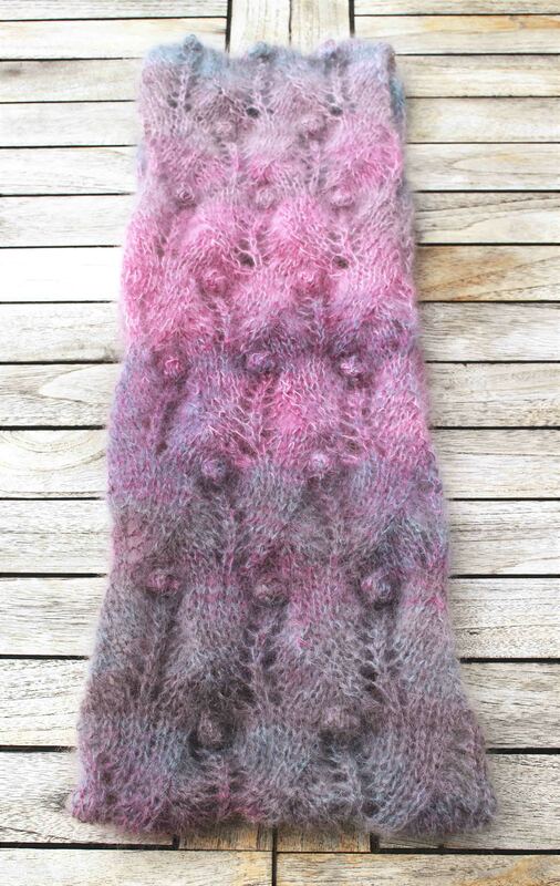 Originalgarn: LANA GROSSA: 50 g = 420 m „Silkhair Print“ (70% Mohair, 30% Seide, Lauflänge 420 m/50 g) in Farbe Rosa/Pink/Graubraun/Aqua (= Nr. 338) (Dieses Garn ist leider nicht mehr erhältlich).