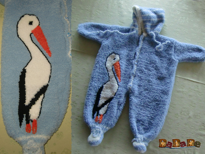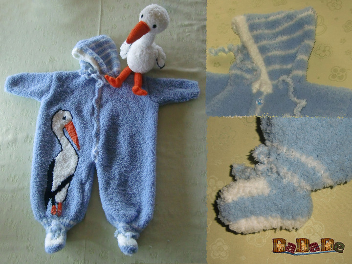 Der Storch, sowie der Anzug werden mit der Nadelstärke 3,5 gestrickt