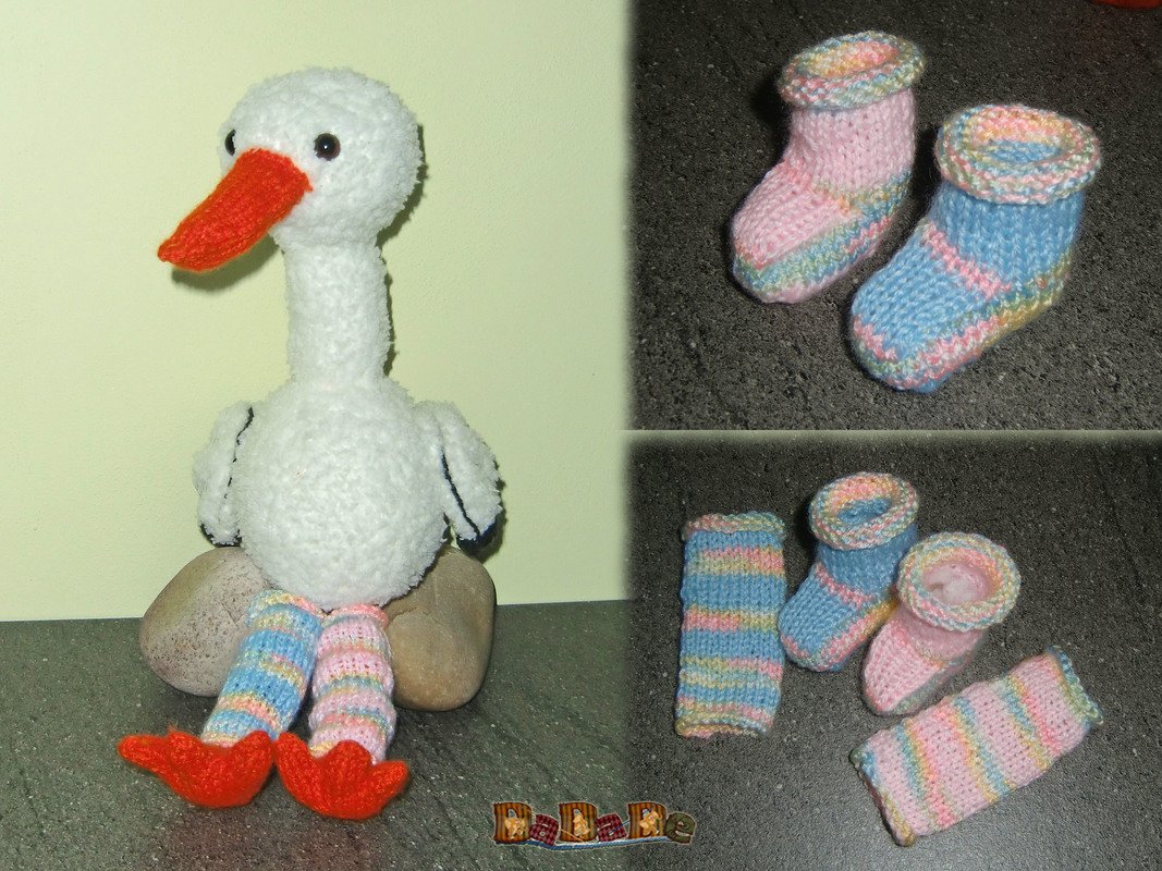 Der Storch kann mit Stulpen und Socken gestrickt werden,