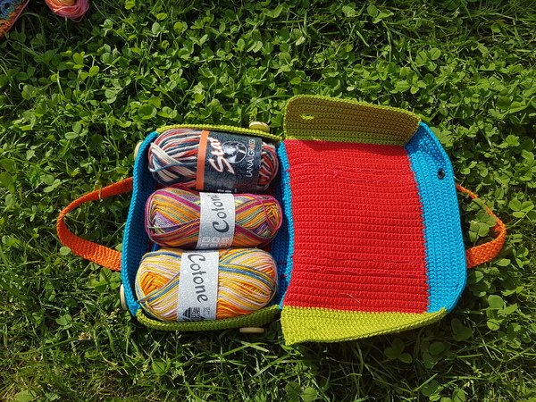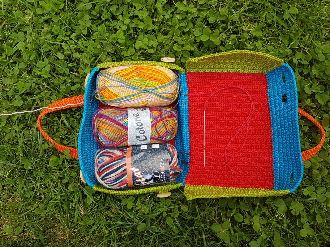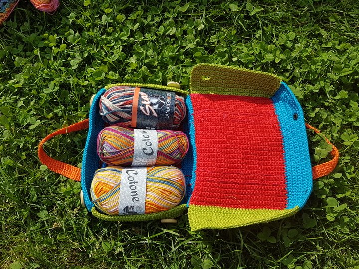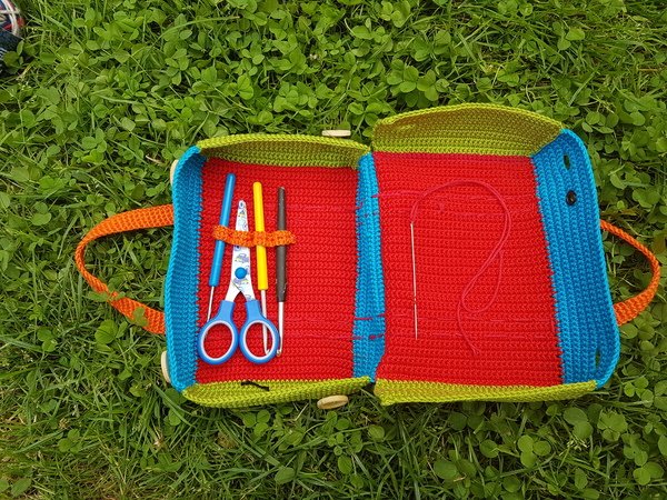 Mit diesem Köfferchen kannst du dein aktuelles Projekt - egal ob Amigurumi oder ein schönes Dreieckstuch - und alle benötigten Utensilien sicher überall mit hinnehmen.