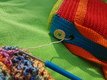 Besonders praktisch ist die Fadenöse an der Oberseite - denn dadurch kannst du ein Fadenende deines Knäuls fädeln und den Koffer wieder verschließen - somit kullert dein Knäul beim Häkeln nicht mehr durch den Garten, über den Balkon, durchs Wohnzimmer, durch die Bahn oder durch den Sand.