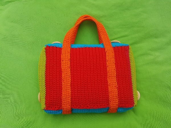 Es wird auf 15 Seiten mit 60 Bildern und aufsührlichen Erklärungen Schritt für Schritt beschrieben, wie ihr den Koffer selbst häkeln könnt.