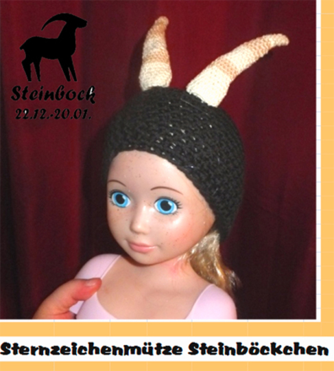 es sidn 2 variationen der Mütze als Steinbock möglich - hier gibt es die Steinbockanleitung NUR mit Hörnern