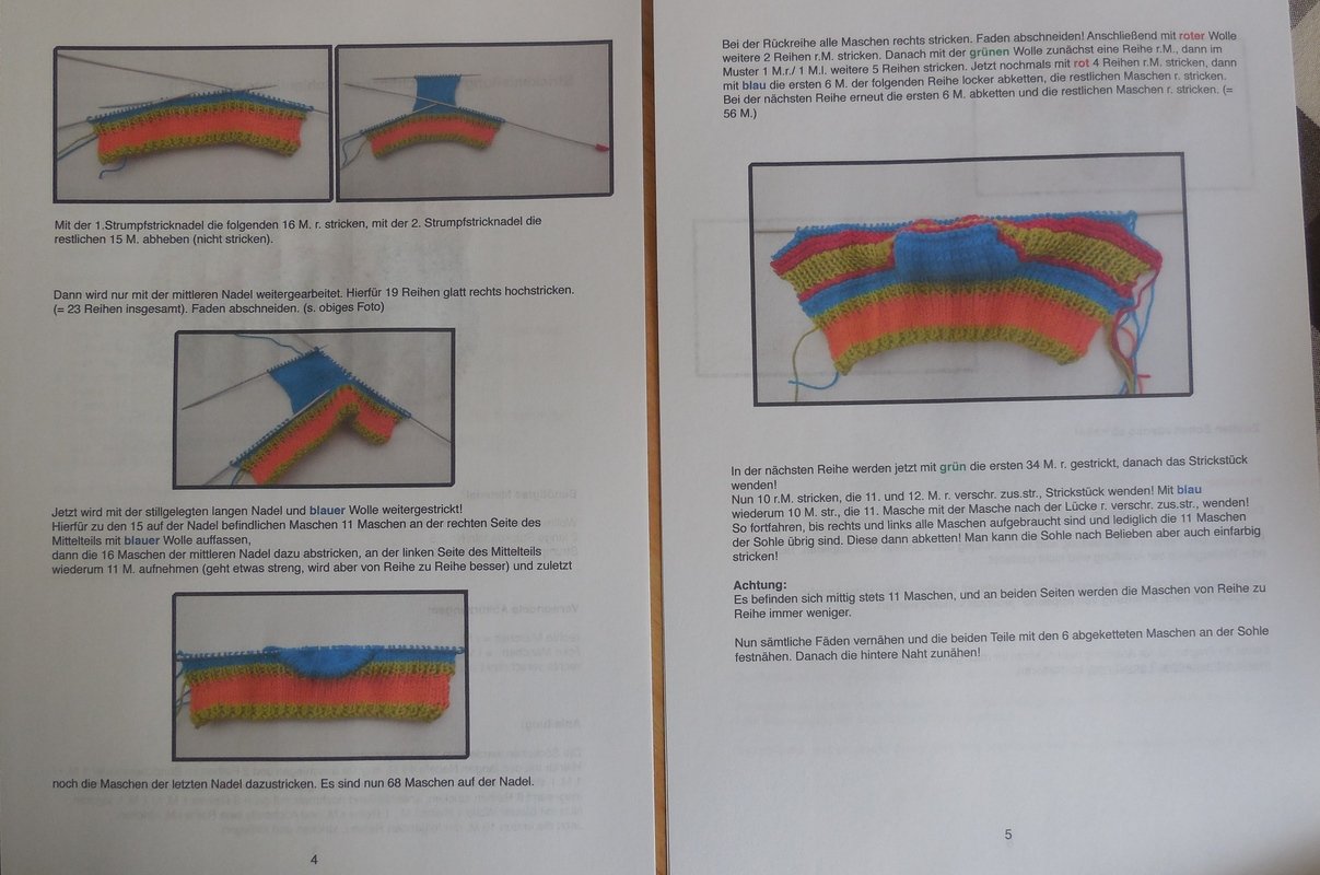 Die Anleitung ist sehr ausführlich mit Fotos zu den jeweiligen Arbeitsschritten geschrieben und umfasst 8 Seiten. Sie beinhaltet jedoch keinen Strickkurs.