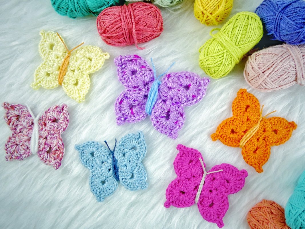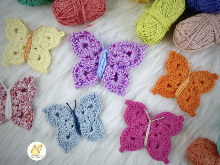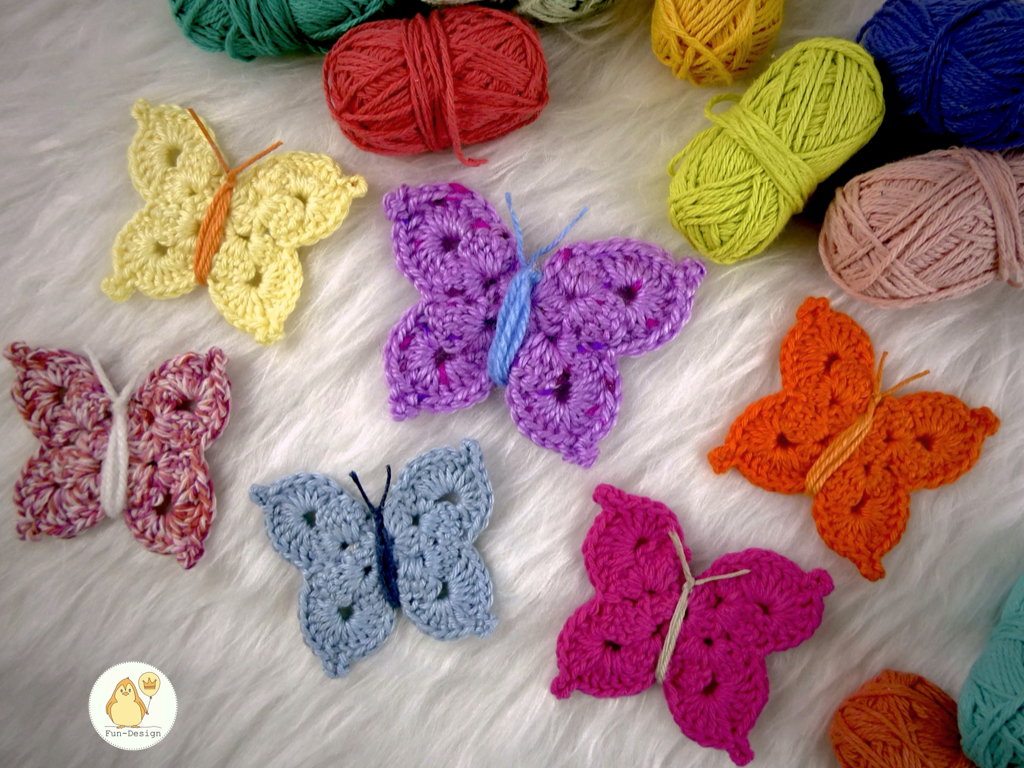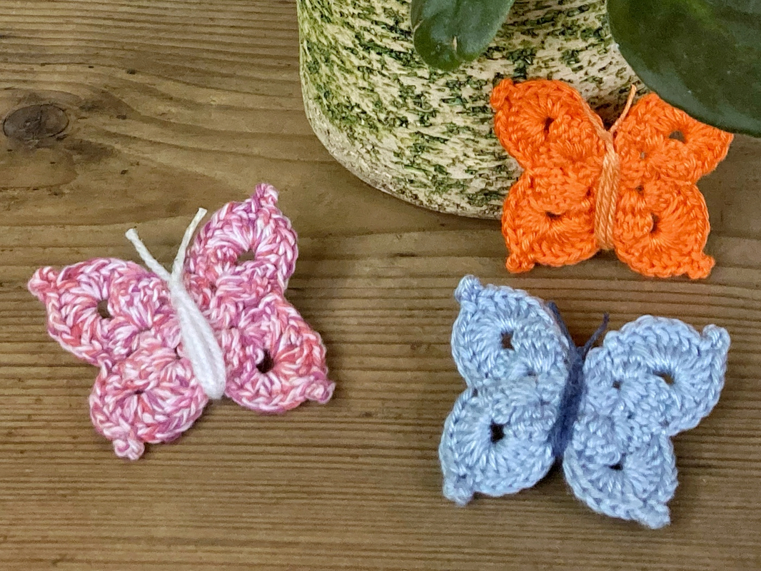 Daraus kannst du dir wunderbar einen ganzen Schwarm dieser Schmetterlinge häkeln.