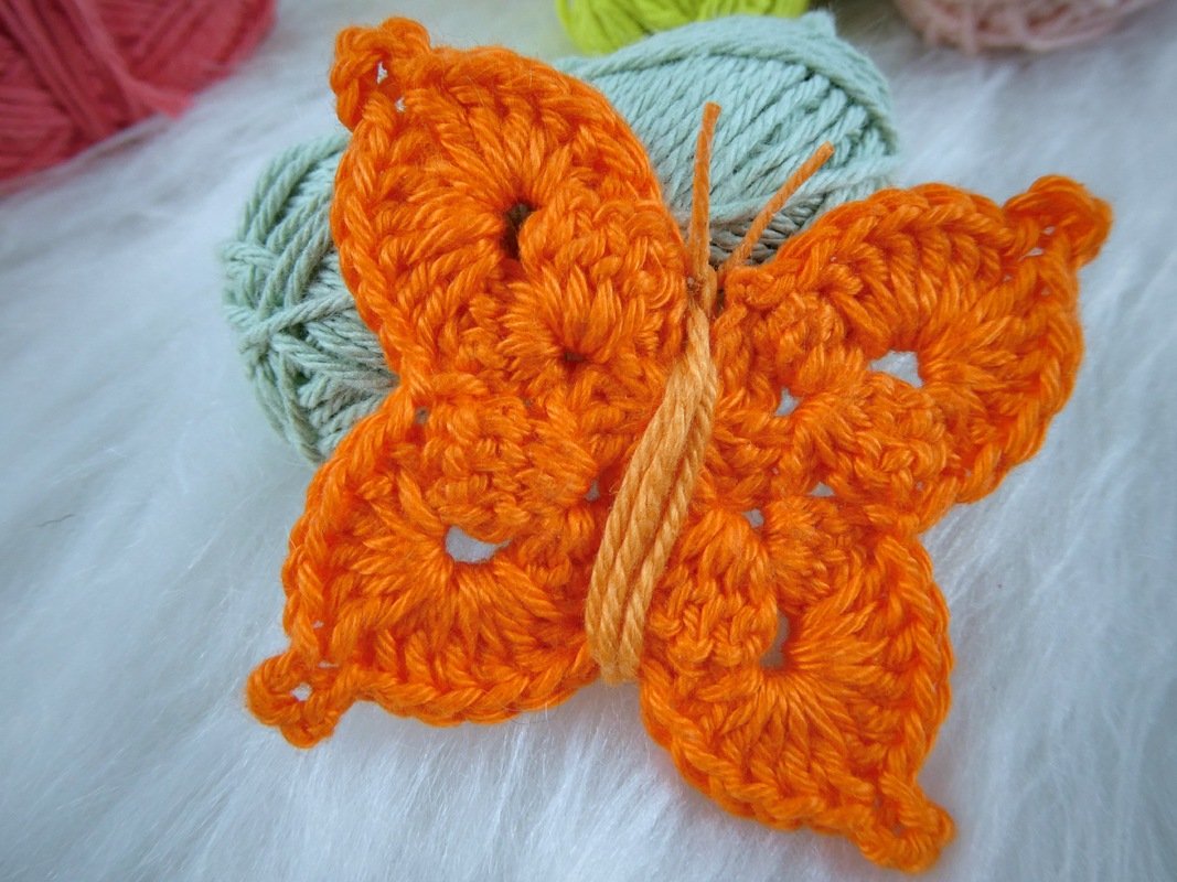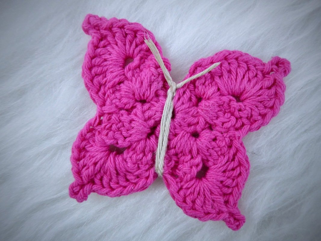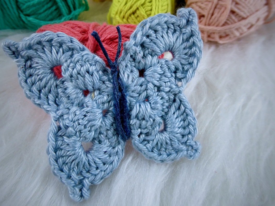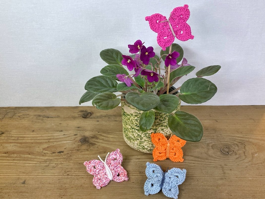 Daraus kannst du dir wunderbar einen ganzen Schwarm dieser Schmetterlinge häkeln.