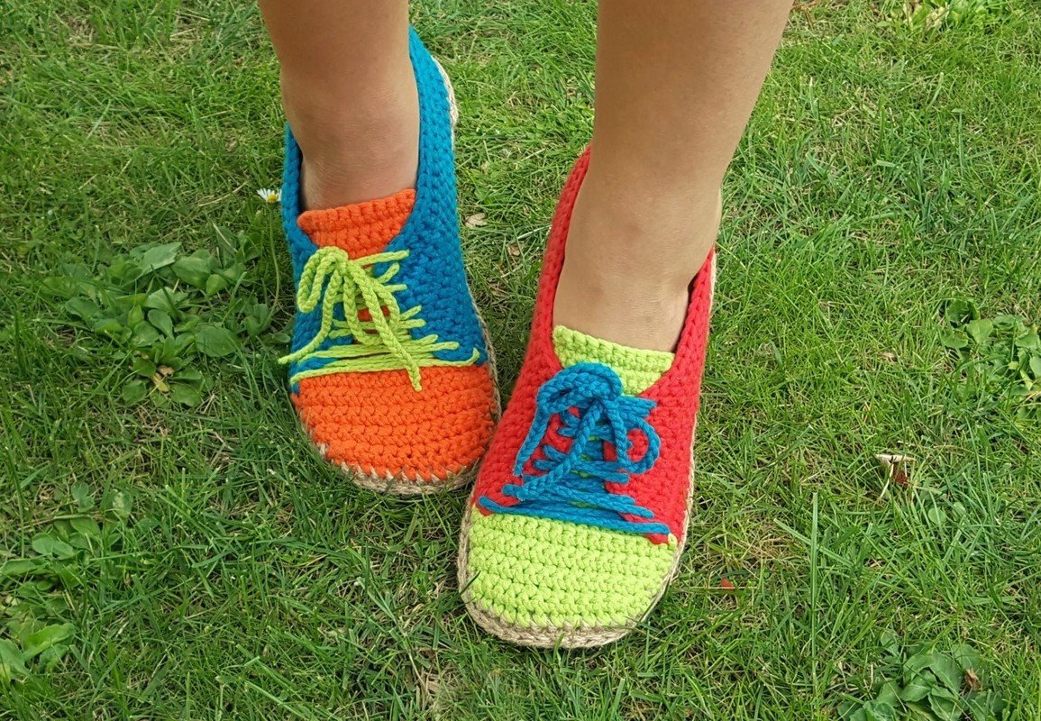 Kunterbunt ist "in" ! Nach dieser Anleitung könnt ihr super bequeme kunterbunte Schuhe, mit Packschnur für draußen und Wolle für zu Hause nacharbeiten. Die Schuhe sind Ruck Zuck gehäkelt und bei den abwechslungsreichen Farben wird es nicht langweilig beim Tragen!