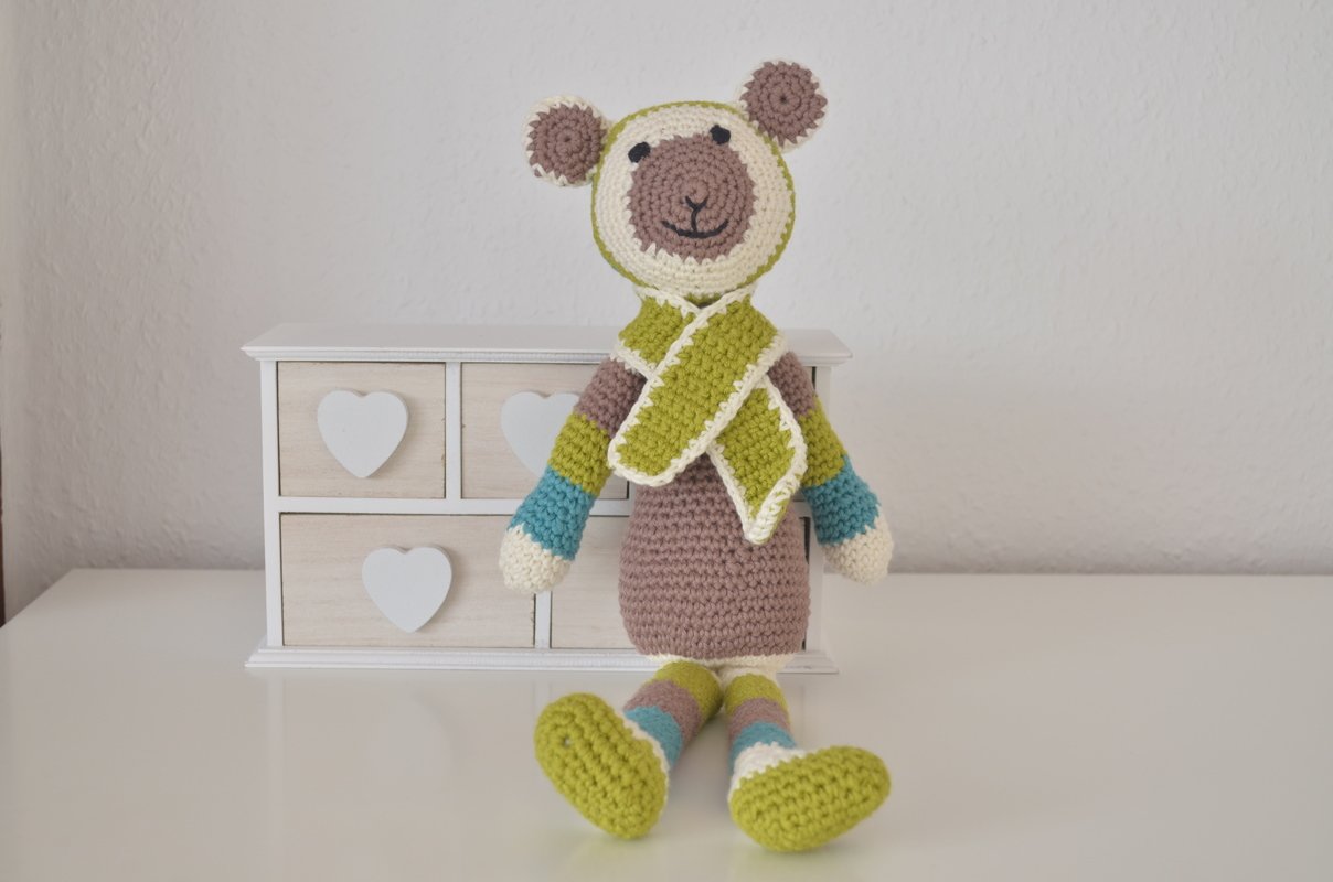Diese Anleitung zeigt euch Schritt für Schritt wie ihr diesen total süßen Teddybär häkelt!