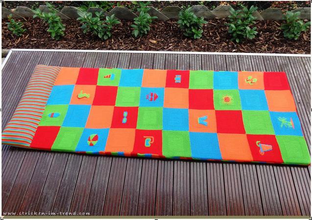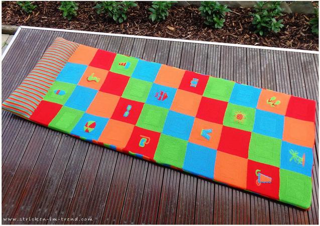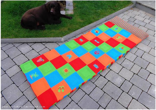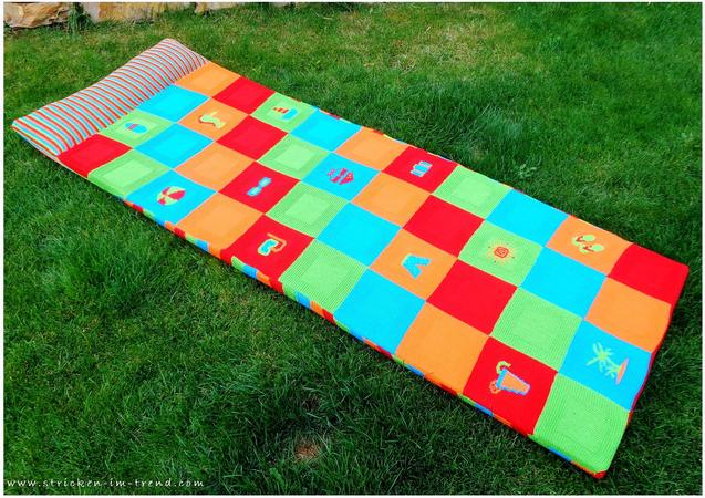 Die Strandmatte hat eine Länge von etwa 195 cm (inklusive Polster), eine Breite von ca. 70 cm und ist etwa 2,5 cm stark.