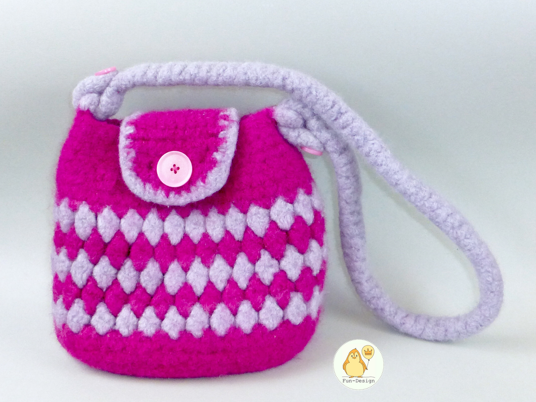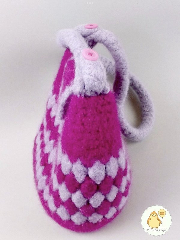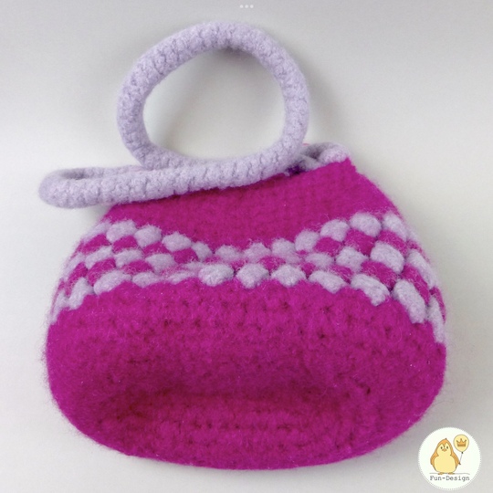 Die niedliche Tasche wird zuerst gehäkelt und dann in der Waschmaschine gefilzt - das ist ganz einfach, Tips dazu findest du in der Anleitung
