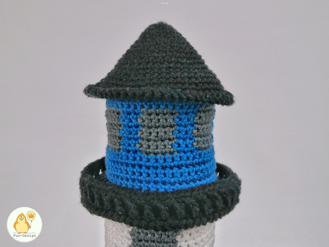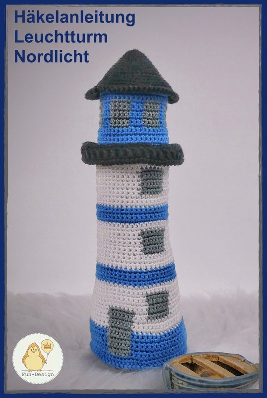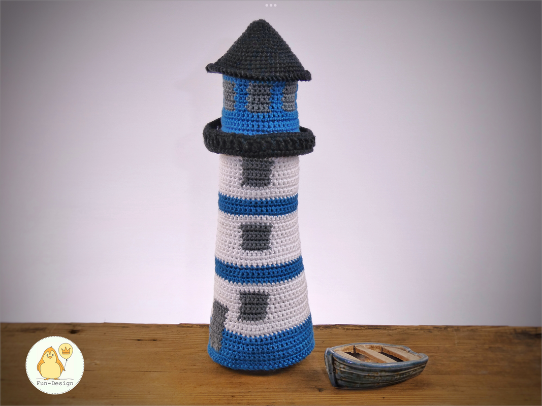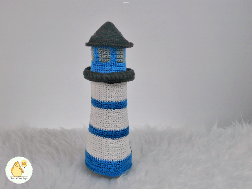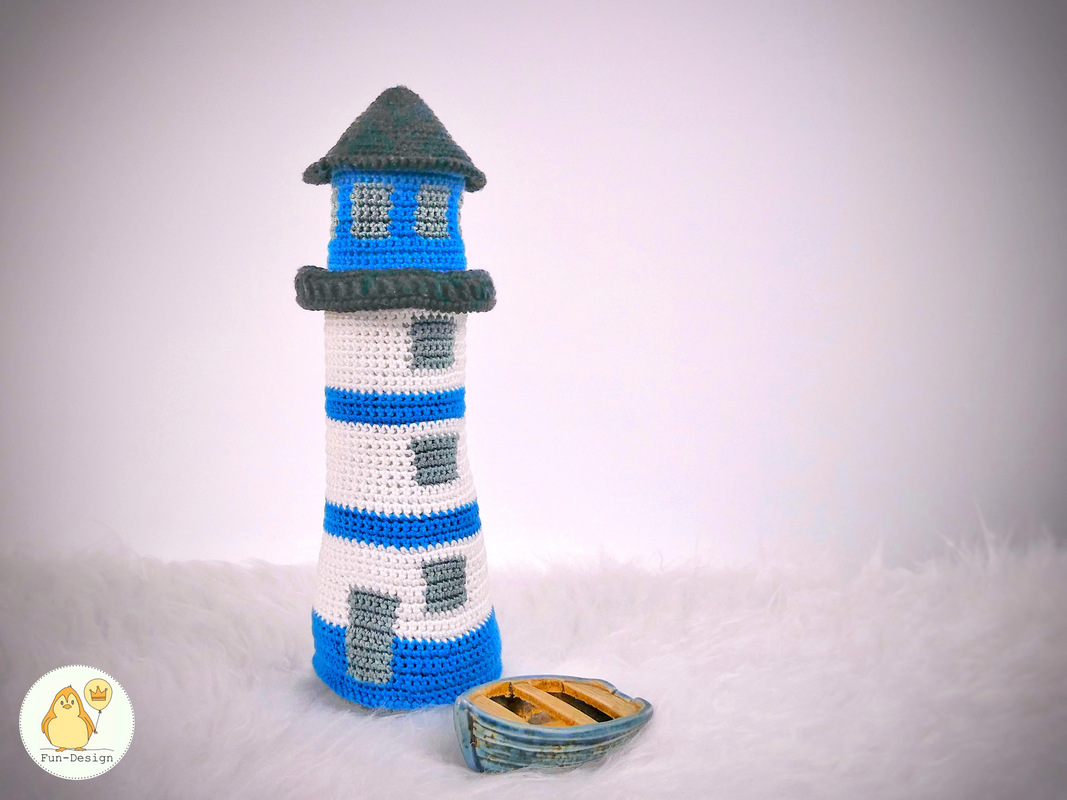 Gehäkelt mit Nadelstärke 2,5 wird der Leuchtturm ca. 25 cm groß