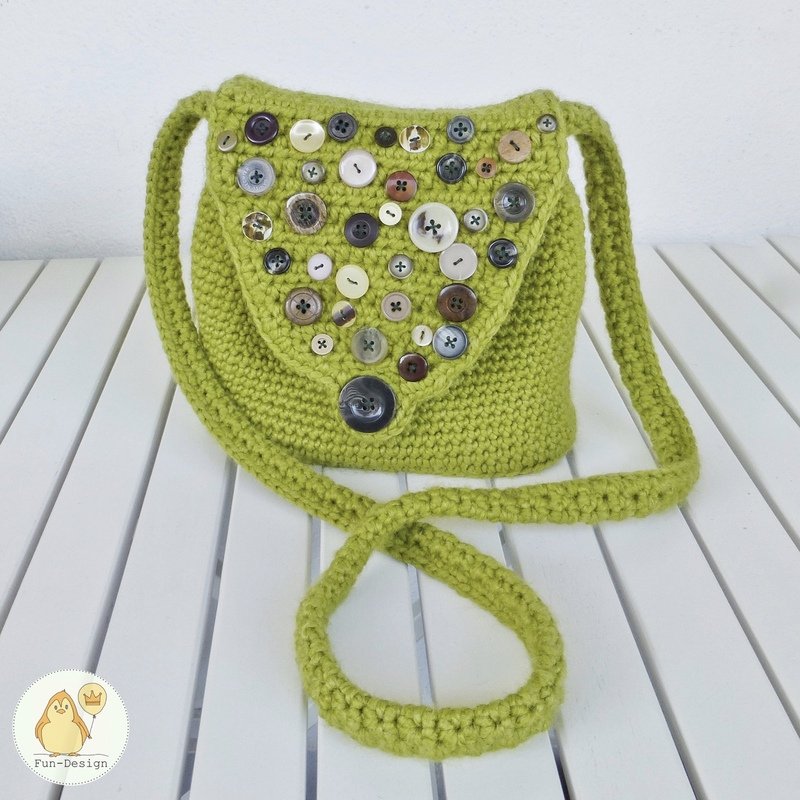 Du kannst dir nach dieser Anleitung deine eigene Kollektion ganz nach deinen Wünschen gestalten, indem du z.B. die Umschlagklappe in einer Kontrastfarbe häkelst, Applikationen anbringst oder kleine Glitzerperlen annähst. Vielleicht möchtest du eine ganz schlichte Tasche? Dann lassˋ die Dekoration einfach weg.