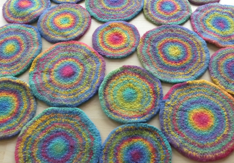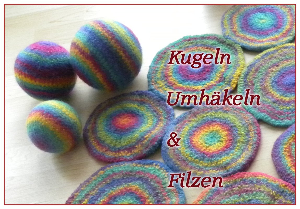 ● Filzwolle (LL ca. 50 m/50 g) für den Teppich 1000 g, für die Kugeln 150 g Regenbogen color