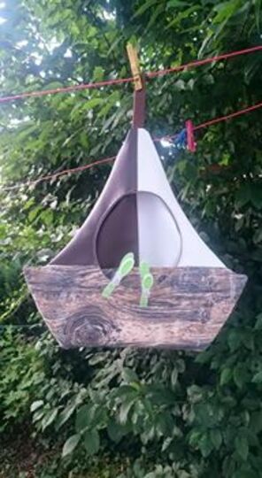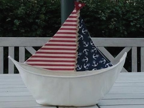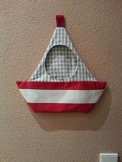 Mit dem eBook "Schiffsbüdel" kannst du dir ganz einfach eine Hängeaufbewahrung in Form eines Segelschiffes nähen.