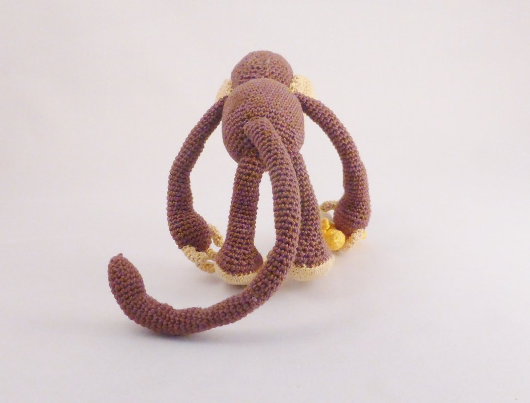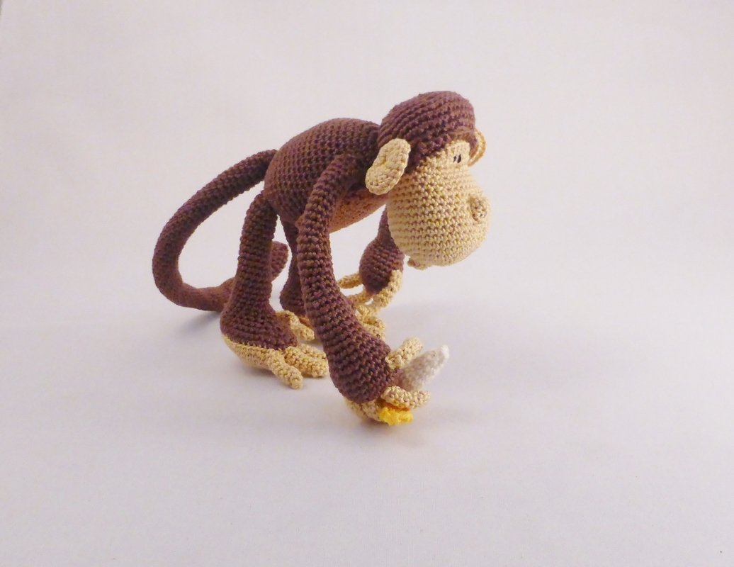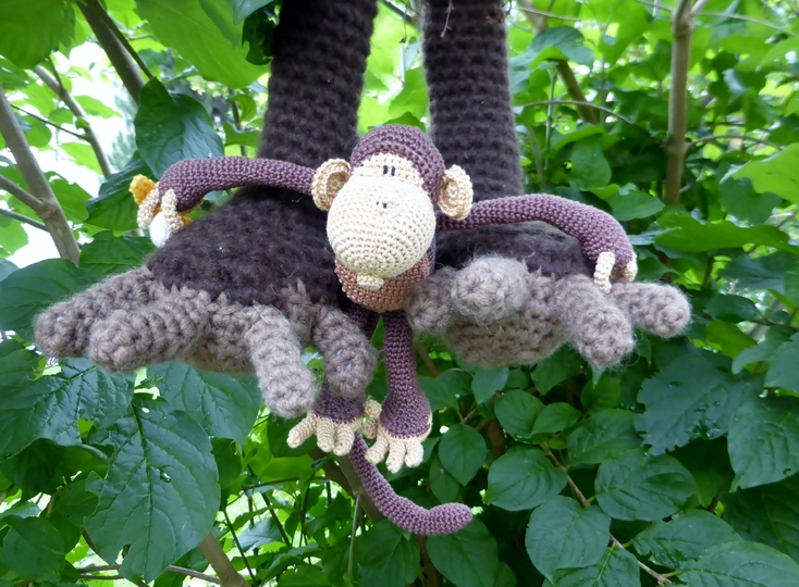 Affe Leo erreicht gehäkelt mit einer 7.0 Häkelnadel eine Grösse von 50 cm.