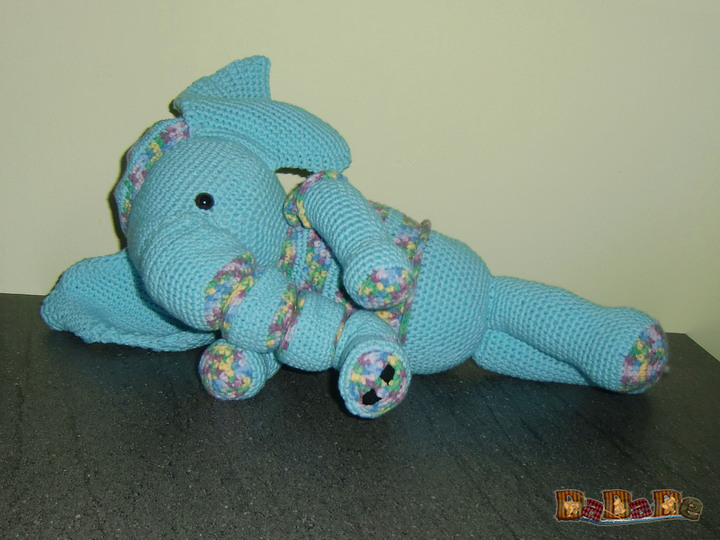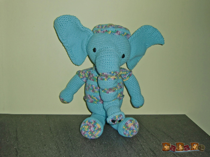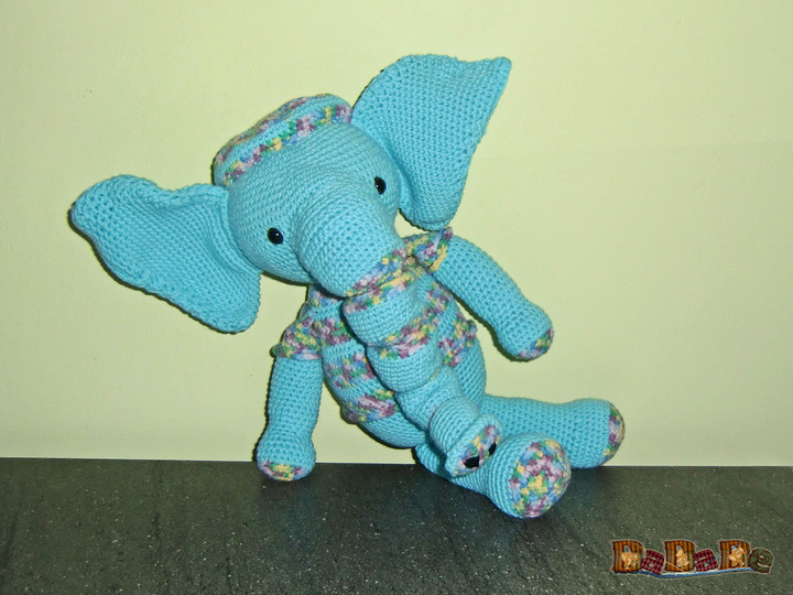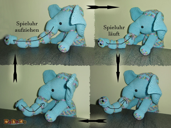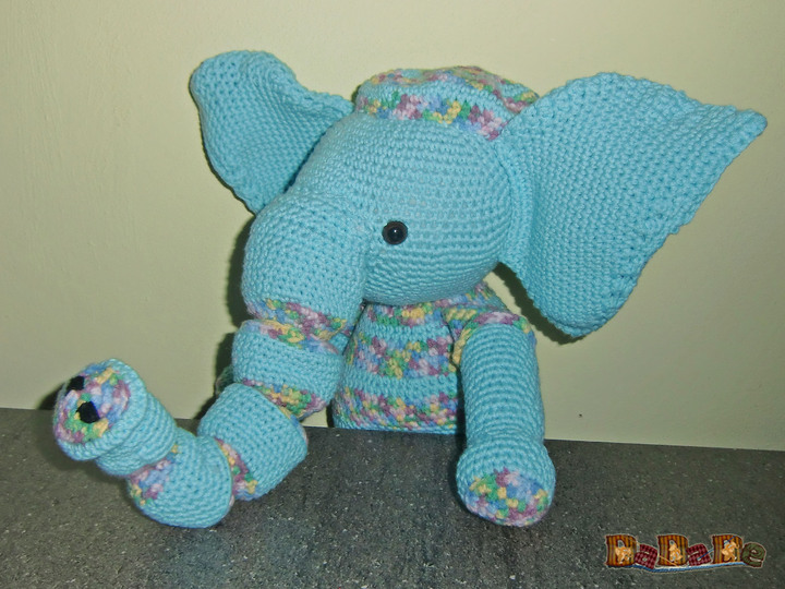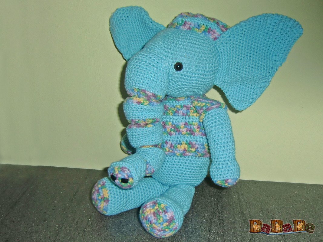 Mit Wolle der Nadelstärke 3 – 4 wird der Elefant ungefähr;
