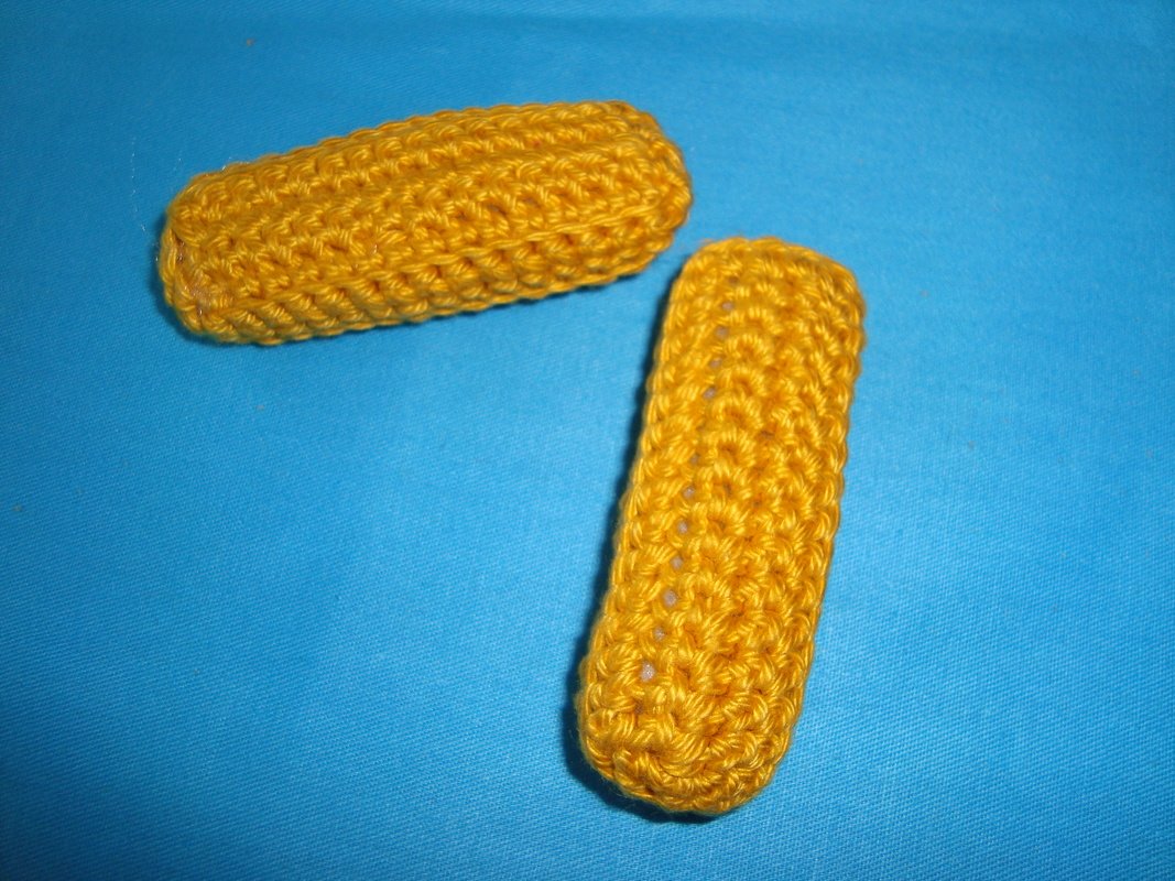 Ich biete hier eine selbst entworfene Anleitung zum Häkeln von Fischstäbchen für die Kinderküche oder den Imbiss im Kaufladen.