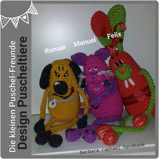 © Diese Anleitung ist urheberrechtlich geschützt! Die Urheberrechte liegen bei Nicole Richter von Puscheltiere. Das Tauschen, Verkaufen und Veröffentlichen der Anleitung sowie das Übersetzen in andere Sprachen ist nicht gestattet. Der Verkauf der fertigen Figuren, die nach dieser Anleitung entstanden sind, ist erlaubt. Bitte dabei immer angeben: Hergestellt nach der Anleitung „Das freche PuschelTrio“ von Puscheltiere.