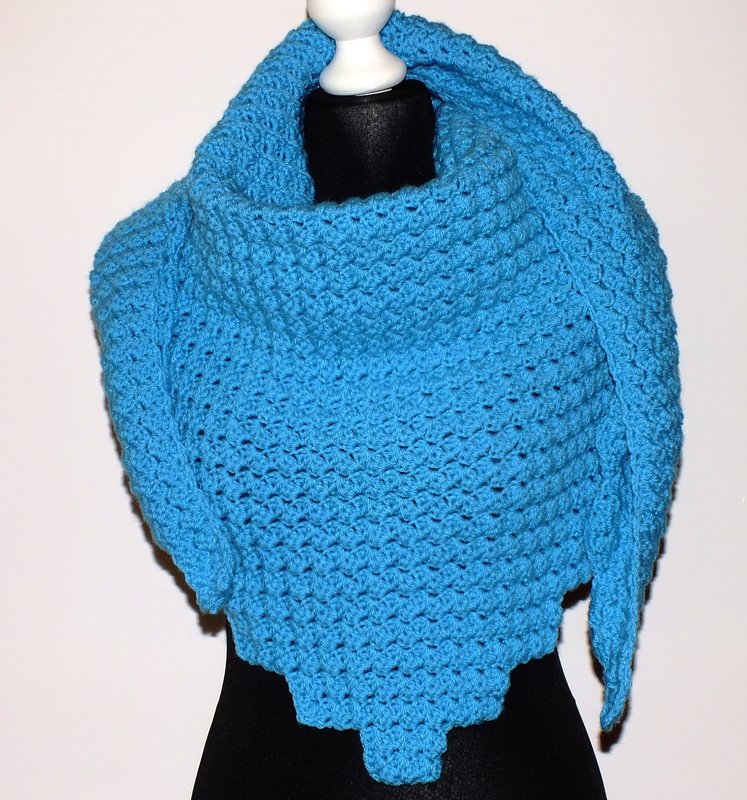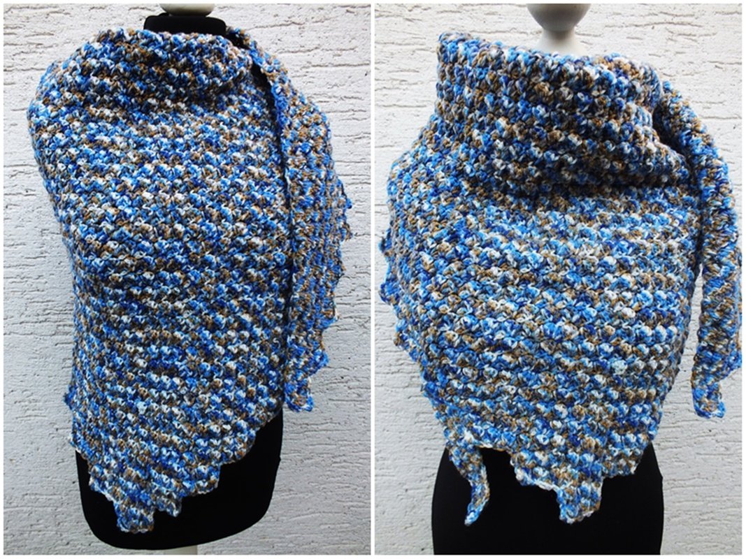 Mit Hilfe dieser Anleitung können Sie sich ein hübsches Dreieckstuch häkeln. Das Tuch wird quer mit kastenförmigen Zunahmen bzw. Abnahmen in einem sehr einfachen Muster gehäkelt, bei dem sich eine Reihe stets wiederholt. Die Größe des Tuches können Sie individuell Ihren Wünschen häkeln, indem Sie mehr Zunahmen arbeiten und somit die Länge und die Höhe in der Mitte variiert. Mein Tuch hat folgende Maße: