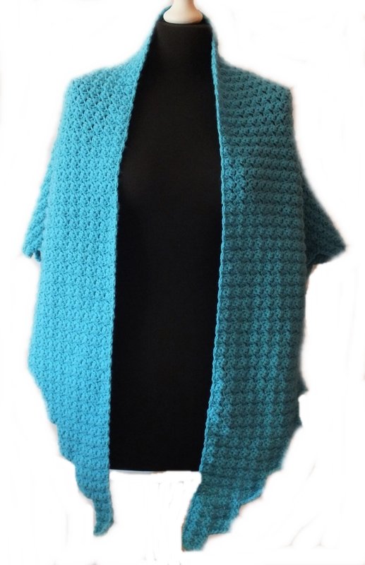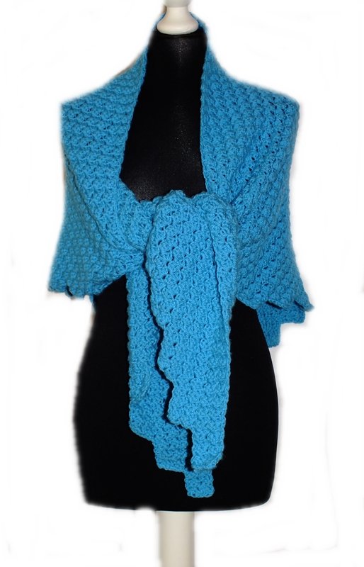 Das Modell auf dem Foto wurde mit Polyacrylgarn mit einer Lauflänge von 133m/50g gehäkelt und ist somit ein recht dickes und schweres Tuch geworden. In der Anleitung ist aber zusätzlich noch beschrieben, wie das Tuch mit Lacegarn mit einer Lauflänge von 350m/50g gehäkelt werden kann, falls Sie lieber ein ganz leichtes Tuch häkeln möchten.
