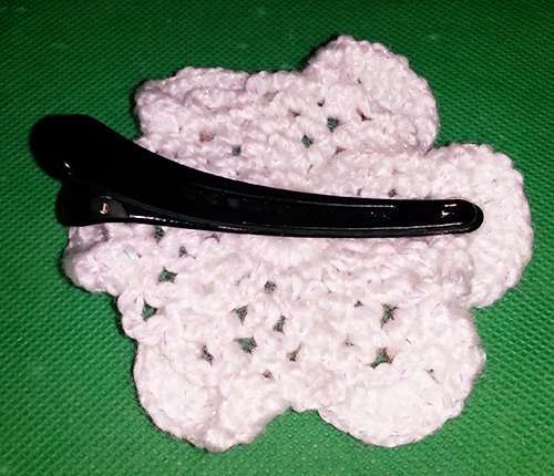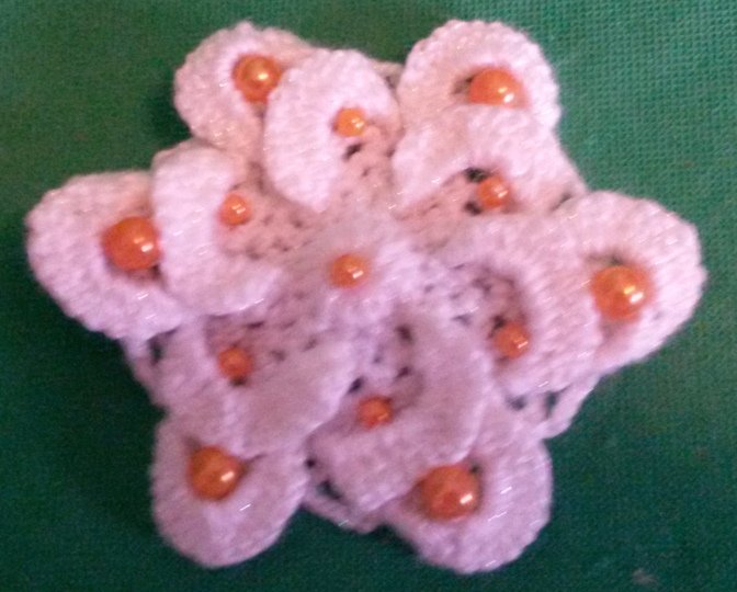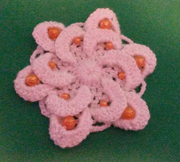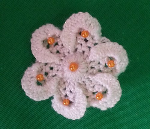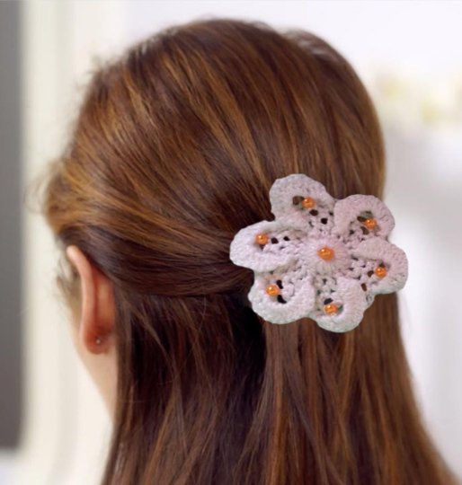 Ein schickes Accessoir bildet diese gehäkelte Perlenapplikation. Nicht nur als Haarspannge sondern auch als Applikation für andere Projekte verwendbar.