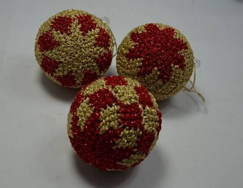 Weihnachtskugeln in Entrelac-Technik gehäkelt.