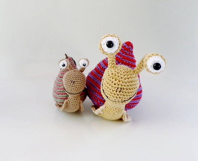 Schnecken Walti & Willy sind super zum Aufstellen, als Geschenk, als Kuscheltier zum Spielen, als Taschenbaumler oder Schlüsselanhänger (Willy)