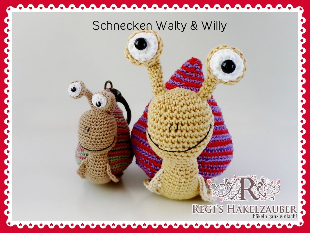 Es ist Schneckenzeit!! -Spare jetzt im Doppelpack! Walti passt zuhause auf, wenn Du weg bist und der kleine Willy ist Dein Begleiter ausser Haus. Er lässt sich super als Schlüsselanhänger oder Taschenbaumler verwenden