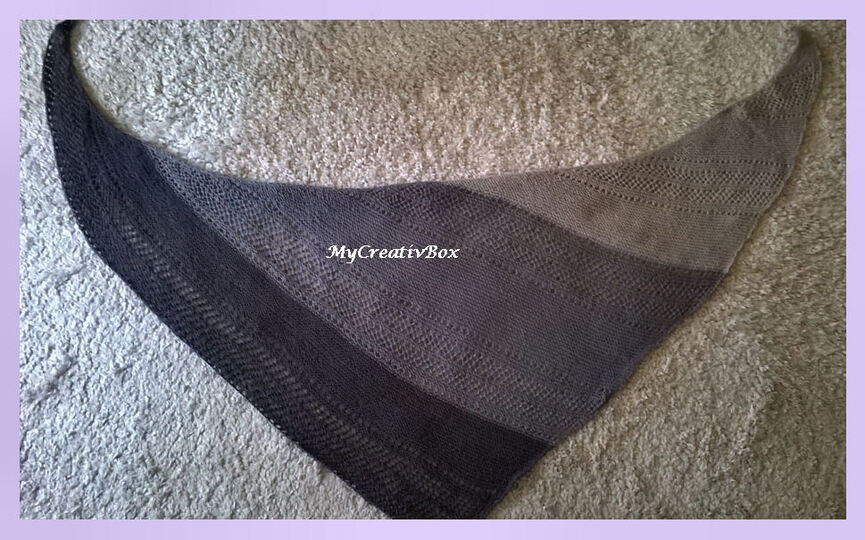 Dieses Tuch wird an der seitlichen Spitze begonnen. Das hat den Vorteil, dass sie einfach stricken bis ihre Wolle alle ist, oder die von ihnen gewünschte Größe erreicht ist. Ich habe die Aktiv Sockenwolle von Supergarne in drei Farben verstrickt. Sie können sich natürlich auch für ihre Lieblingsfarben von einem Anbieter ihrer Wahl entscheiden. Bedenke sie nur, bei einer anderen Lauflänge ändert sich auch die Tuchgröße.