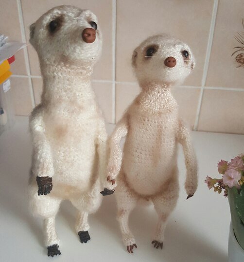 Diese Anleitung gibt Euch die Möglichkeit einen ach das ist doch langweilig warum nicht gleich mehrere selbst herzustellen.Mit dieser reich bebilderten Anleitung ist es selbst Häkelanfänger möglich sich eine Erdmännchen Familie ins Haus zu holen oder auf die Terasse.Wenn ihr Emil das Erdmännchen toll findet einen MR FM,halbe Stäbchen ,ganze Stäbchen und zu und abnehmen könnt dann zögert nicht länger und holt ihn Euch.Innen hat Emil ein Drahtgestell der es Emil ermöglicht keck die Welt zu erkunden.Wir hatten sehr viel Spass bei der Entstehungsphase bis zum fertigen Erdmännchen und das wünschen wir Euch auch.Danke sagt RoJa Design alle Urheberrechte liegen bei uns