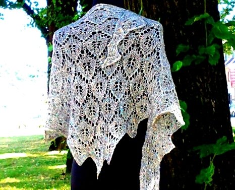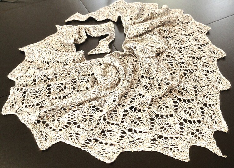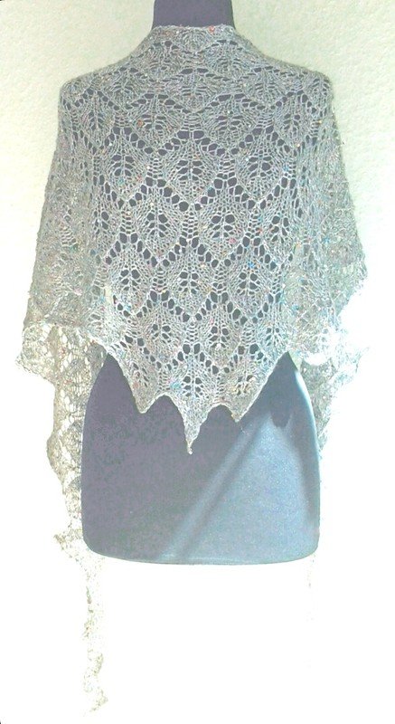 Es besteht aus einer fließenden Kombination aus silbergrauer Katia Air Lux und silbernem Lurex mit Pailletten von ONline.