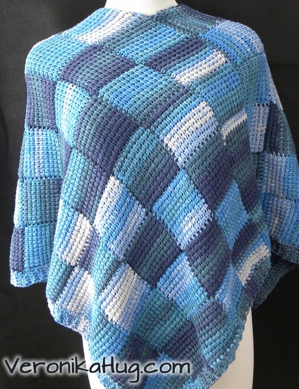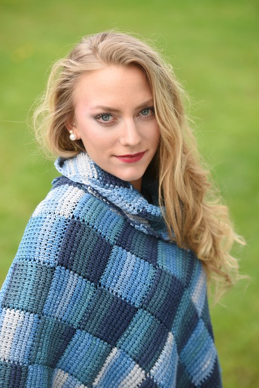 Material : Woolly Hugs BANDY (100% Baumwolle, Lauflänge ca. 210 m/100 g) von L&K (www.Pro-Lana.de): 500 (600) g Blau color (Farbe 12) Tunesische Häkelnadel Nr. 6 – 7 von ADDI.